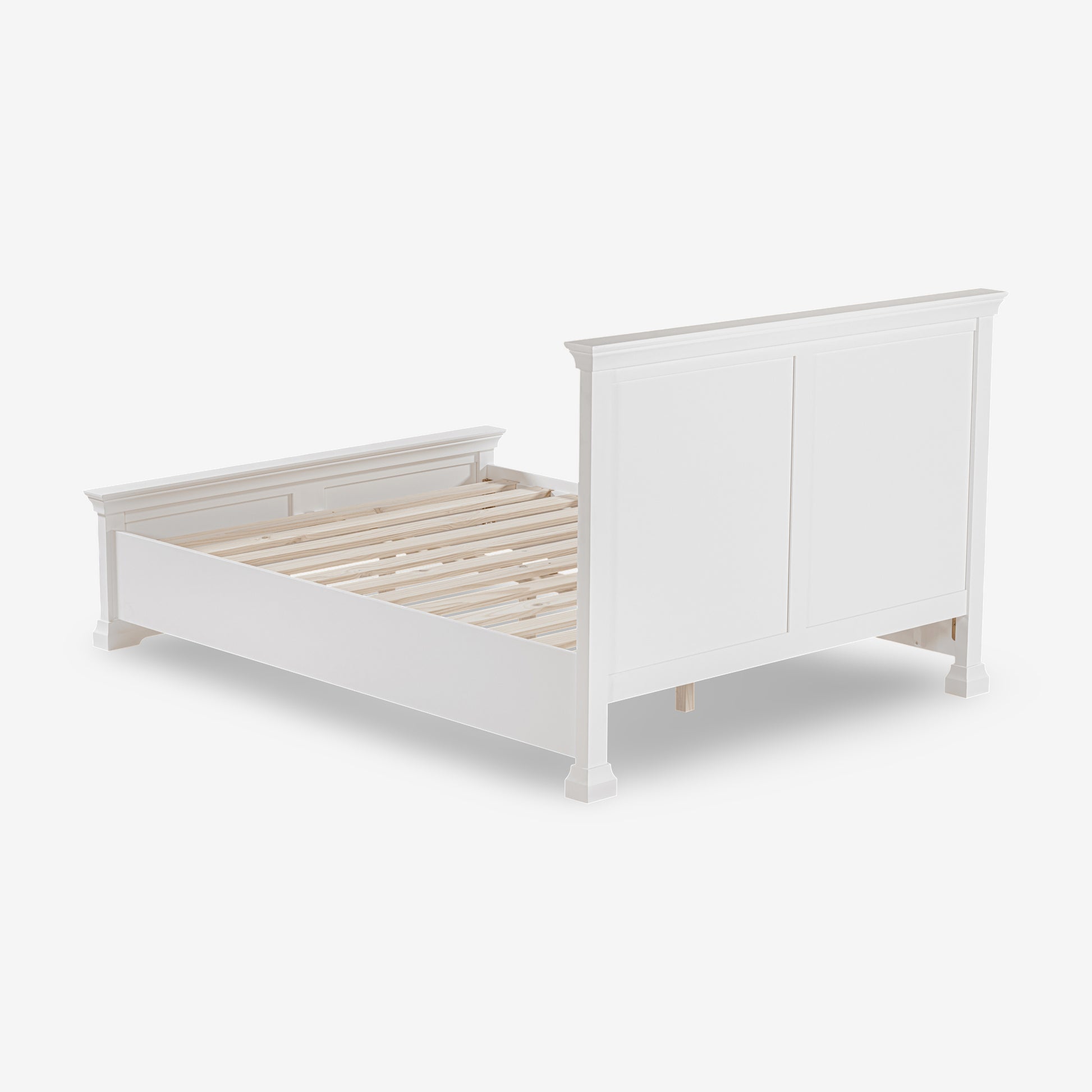 The London Double Bed Frame blends classic design with lasting practicality. Its crisp white finish, panelled headboard and footboard, and moulded detailing bring timeless charm, while a solid slat base and sturdy plinth ensure support and stability.