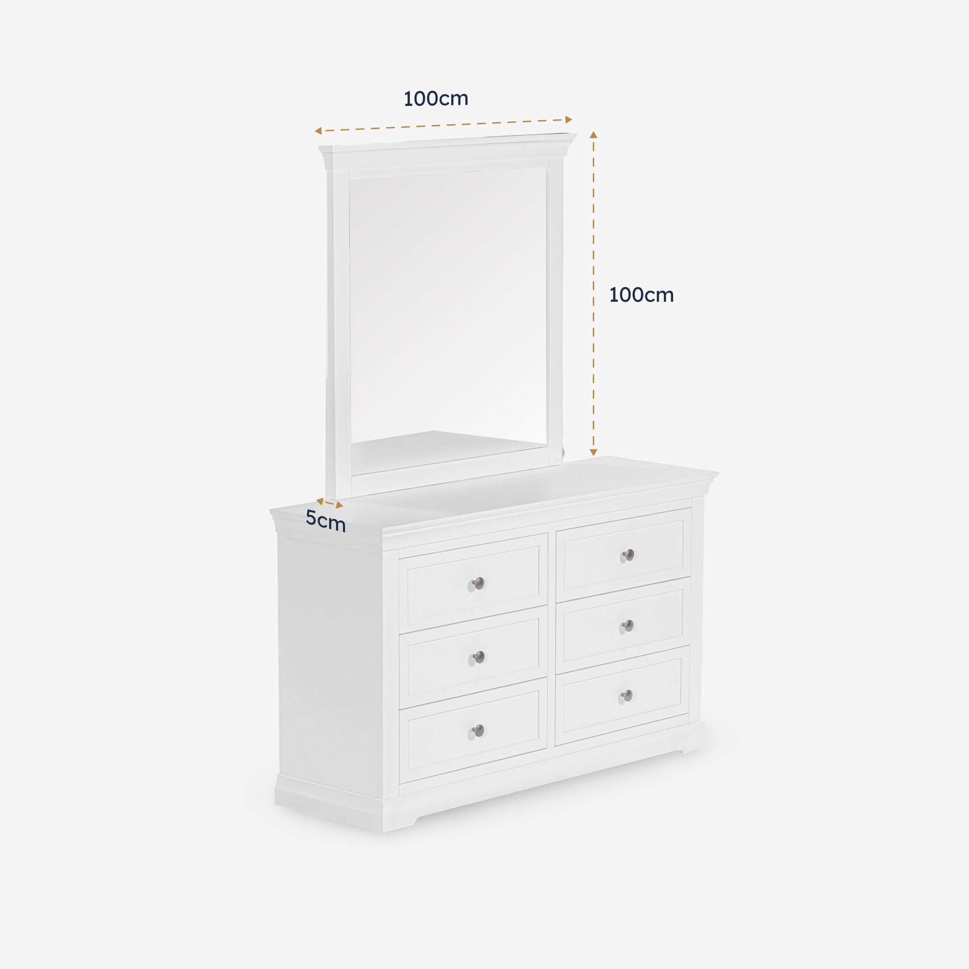 Framed in white with classic molded detailing, the Manchester Mirror adds light and depth to your space. Designed to pair seamlessly with the Manchester Chest, it can be attached or displayed separately. The clean lines and elegant frame make it a stylish addition to both modern and traditional bedrooms.